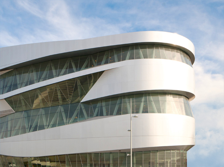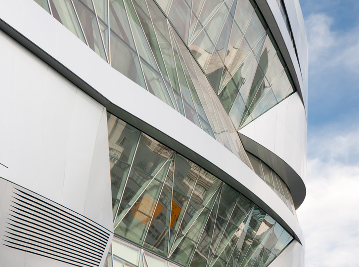 Kernstück des Museums bildet das sternförmige Atrium und die 1.800 unterschiedlichen dreieckigen Scheiben, welche die Außenfassade bedecken.