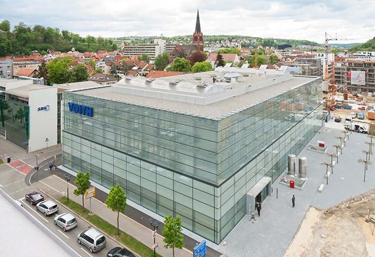 Die Voith GmbH ist ein Technologiekonzern mit Stammsitz in Heidenheim. Sie hat Standorte in über 50 Ländern, beschäftigt weltweit über 39.000 Mitarbeiter und erwirtschaftete 2013/14 einen Umsatz von 5,3 Milliarden Euro. Mit seinen Produkten bedient Voith die Märkte Energie, Öl & Gas, Papier, Rohstoffe sowie Transport und Automotive. In Heidemheim errichtete Voith sein eigenes Ausbildungszentrum. Der Neubau nach den Entwürfen des Leinfelder Architekten Eberhard Faecke setzt auf Transparenz, Funktionalität und Inspiration.