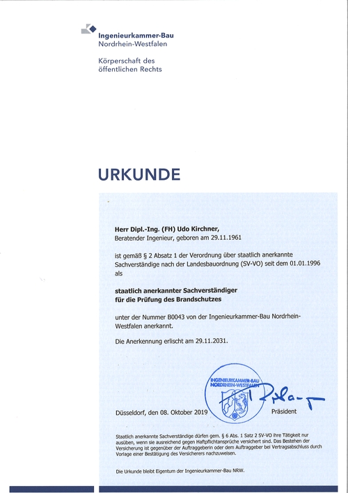 Halfkann + Kirchner verfügt als Sachverständigenunternehmen über ein umfangreiches Repertoire an Anerkennungen und Berechtigungen. Wir liefern das komplette Brandschutzpaket aus einer Hand.